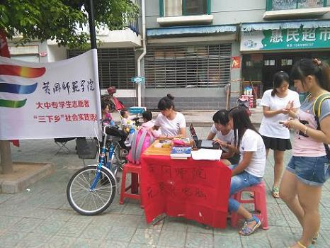 团队此次下乡以普及电脑知识和电脑义务维修为主,但是在摆服务台的过程中,有大爷婆婆路过询问是否可以维修简易小家电,什么手表坏了、手机坏了、电视信号接收差,一时间各种询问声不停,更有一位婆婆直接把自家的电饭煲给拿下来问我们能否维修,让队员们很是尴尬。