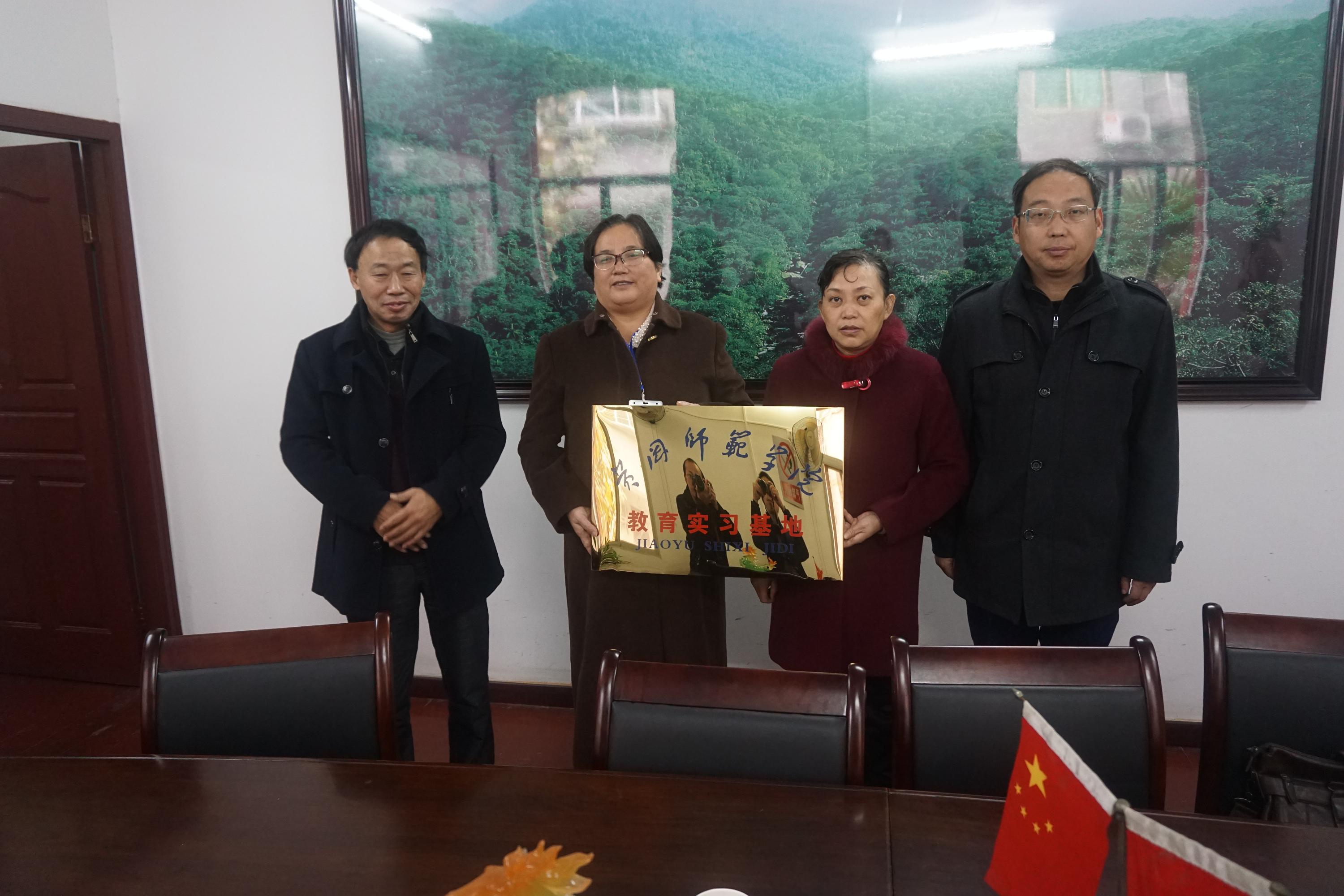 2015年11月11日上午,在黄冈实验小学办公楼二楼会议室,举行williamhill实习实训基地建设签字仪式和授牌仪式,williamhill官网网站经理张青教授和黄冈市实验小学陶秀琪董事长出席仪式。