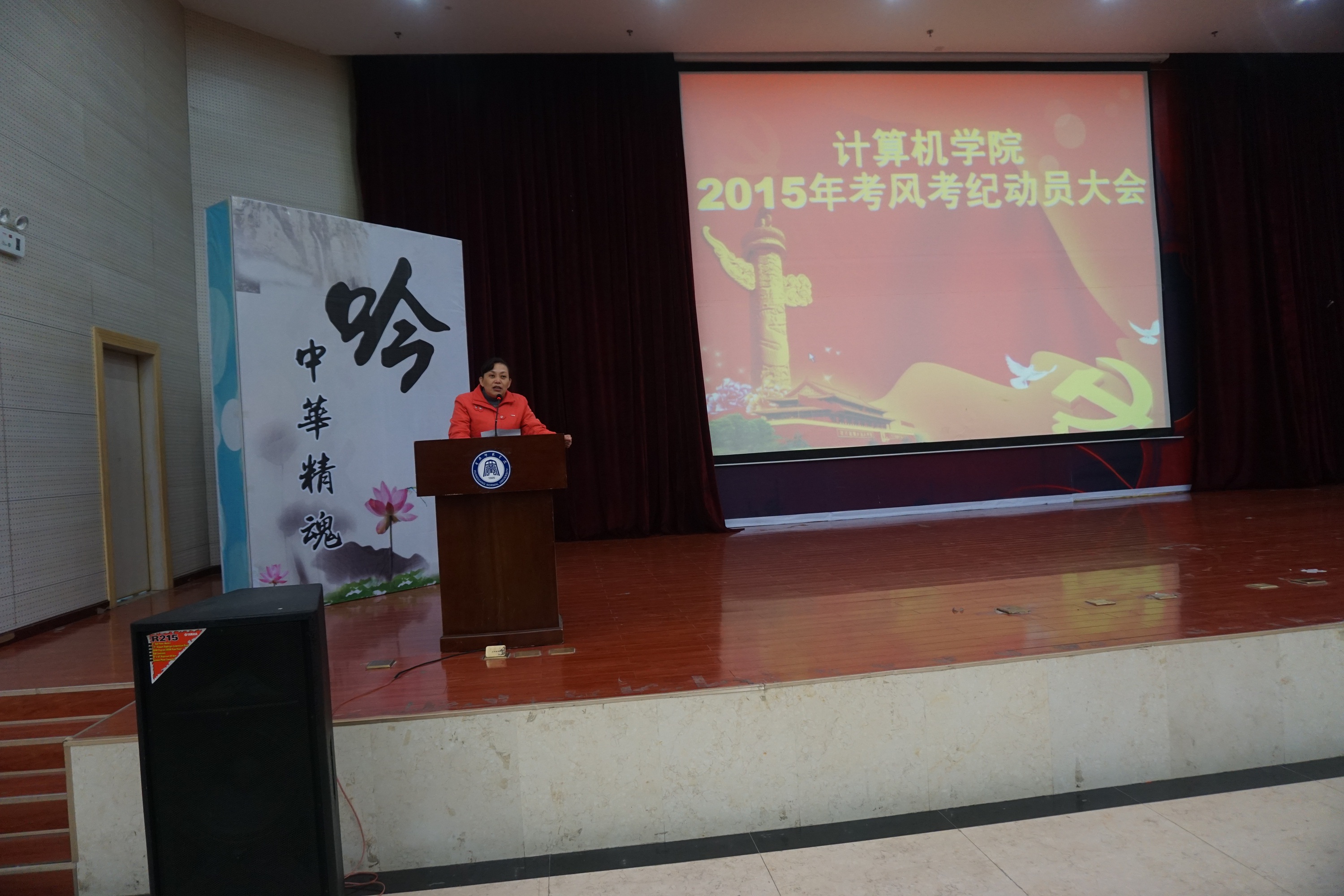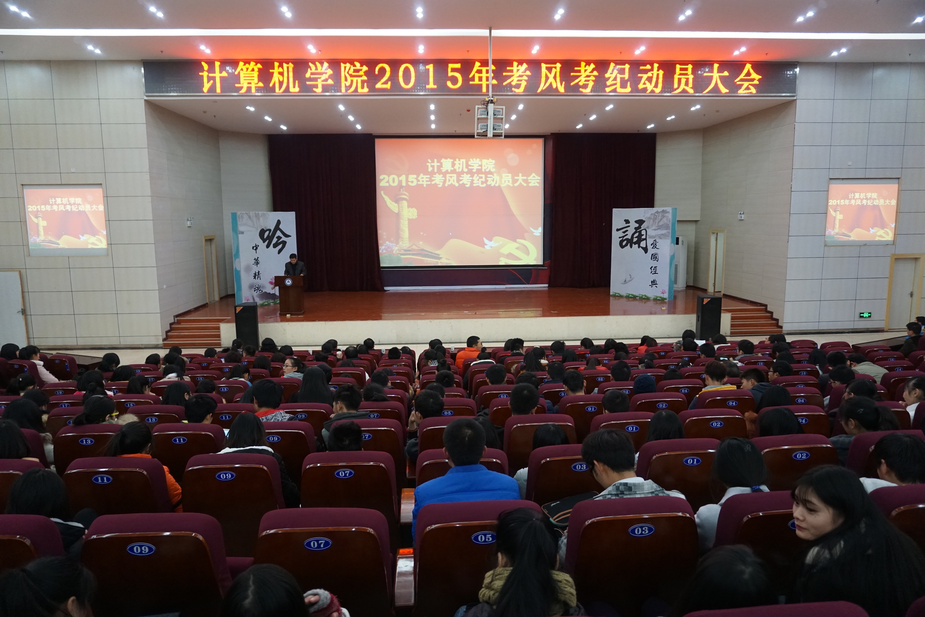 为保证本学期期末考试各项工作的顺利开展,督促同学们以积极的心态面对考试,williamhill官网网站于12月16日晚在千人报告厅举行了2015年考风考纪教育大会。williamhill官网网站经理张青教授,副经理刘华教授出席了本次大会,williamhill官网网站的全体教职工和所有在校员工参加了大会,大会由陈劲松老师主持。