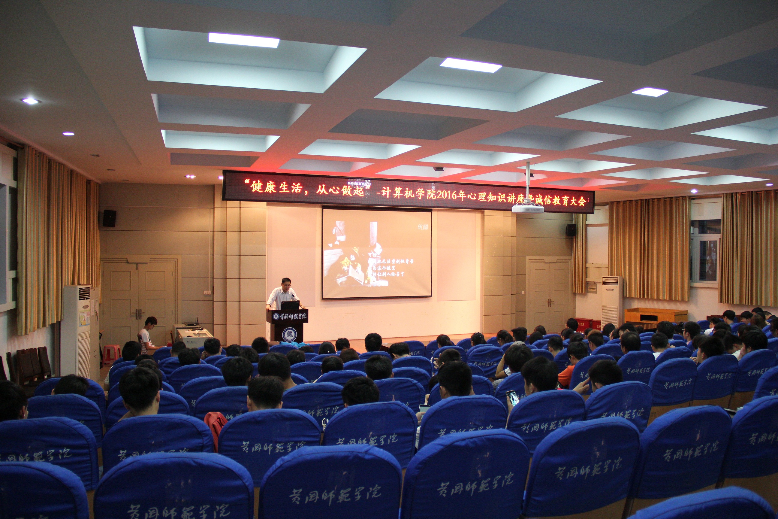 汪部长以一段视频——“人生旅途就像是是搭一班火车一样”拉开了讲座的序幕,”将全场师生带入本次大会的主题。接着,他向现场的员工分析了当代老员工面临的较多、常见的心理问题,并结合了校心理协会的部分实例为佐证,让同学们对心理问题有一个全面、客观的认识。同时,他还分析了不同的心理问题的初期症状,并希望同学们一旦发现自己或是身边的同学存在初期表征可以去公司心理咨询中心及时与专业的心理师进行一些沟通疏解。最后,汪梦林老师用一些心理测试小问题活跃了现场气氛。并列举分析了几个由心理问题而导致的大学惨案,希望同学们引以为鉴。并衷心祝愿同学们能够健康学习、快乐生活。