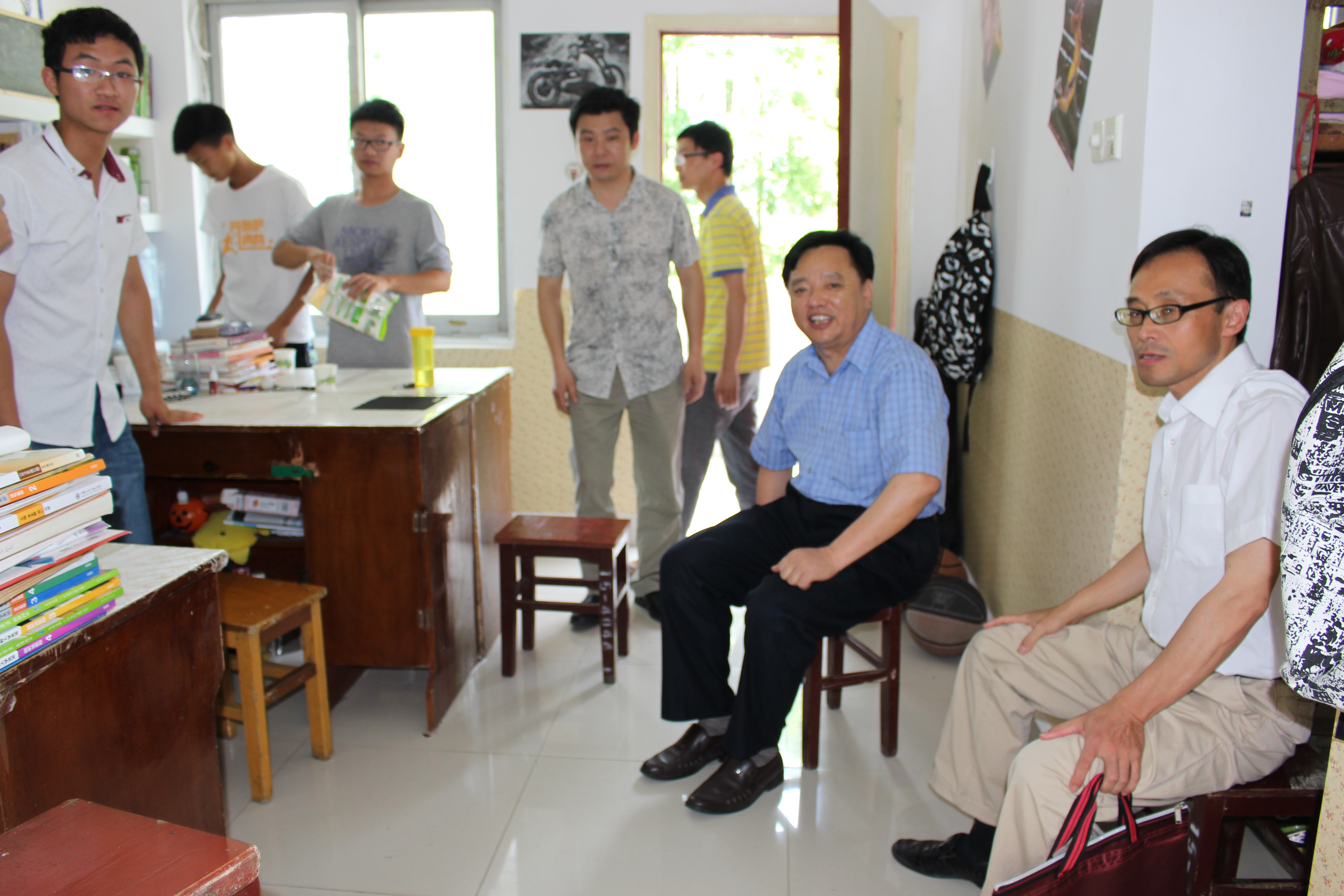 6月6日中午,副校级领导陈年友教授在公司党总支书记何中林教授、陈劲松老师、胡志锋老师、周贵州老师的陪同下深入南区一栋员工寝室303室看望公司信管1501班员工。
