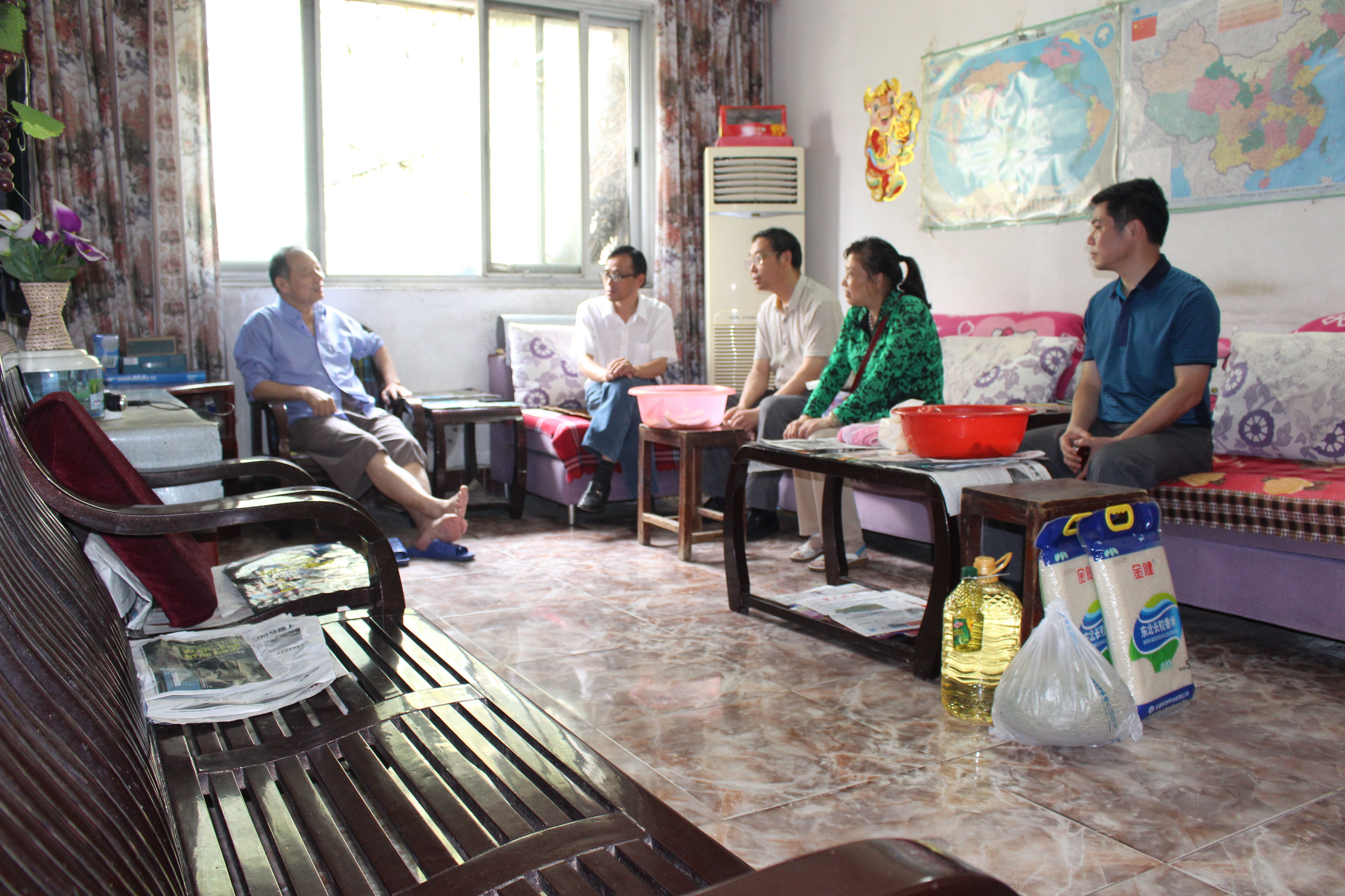 6月29日上午,公司党总支书记何中林教授、经理张青教授、副经理刘华教授以及陈劲松、周贵州老师等一行到williamhill官网网站退休老党员高汉平老师家走访慰问.