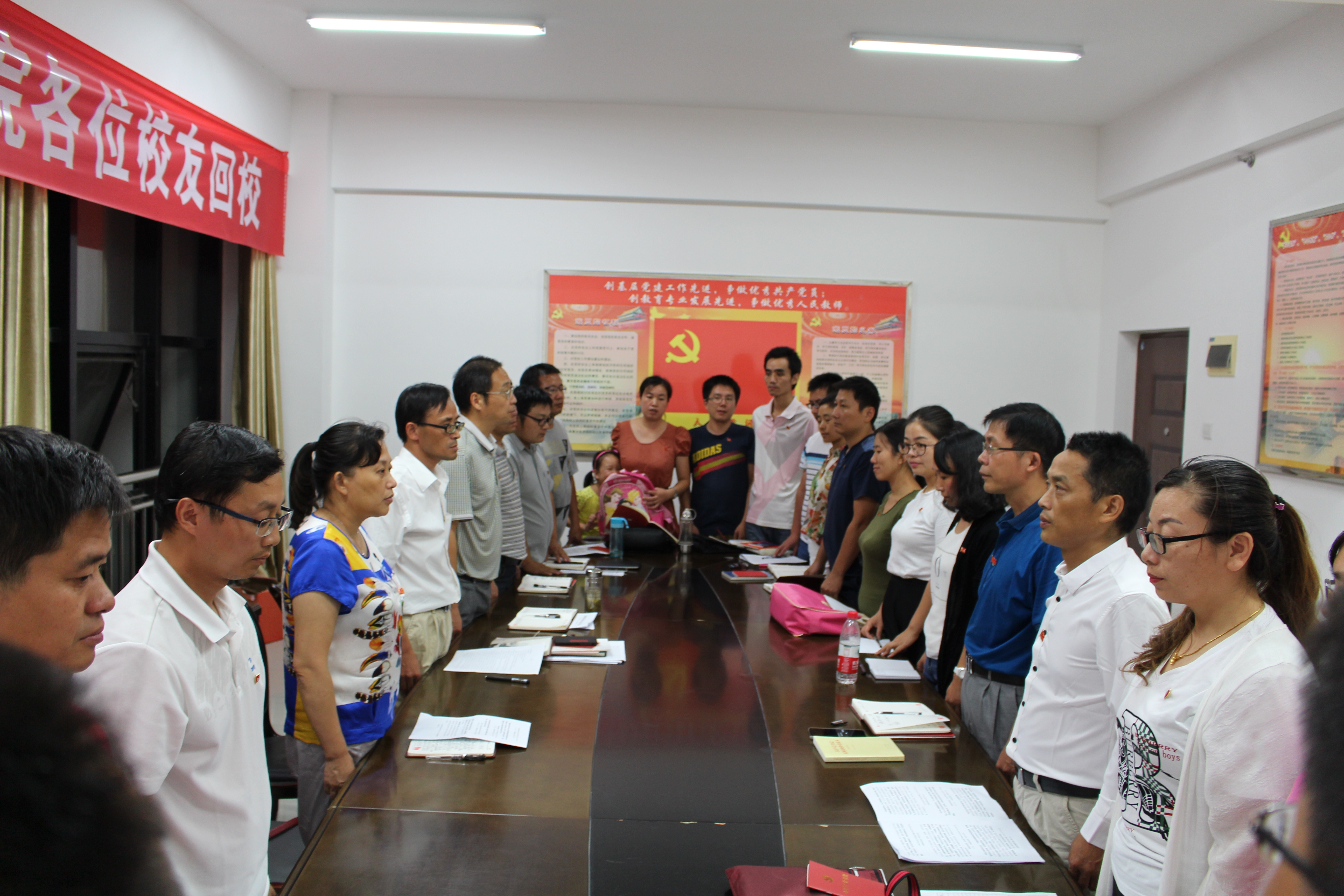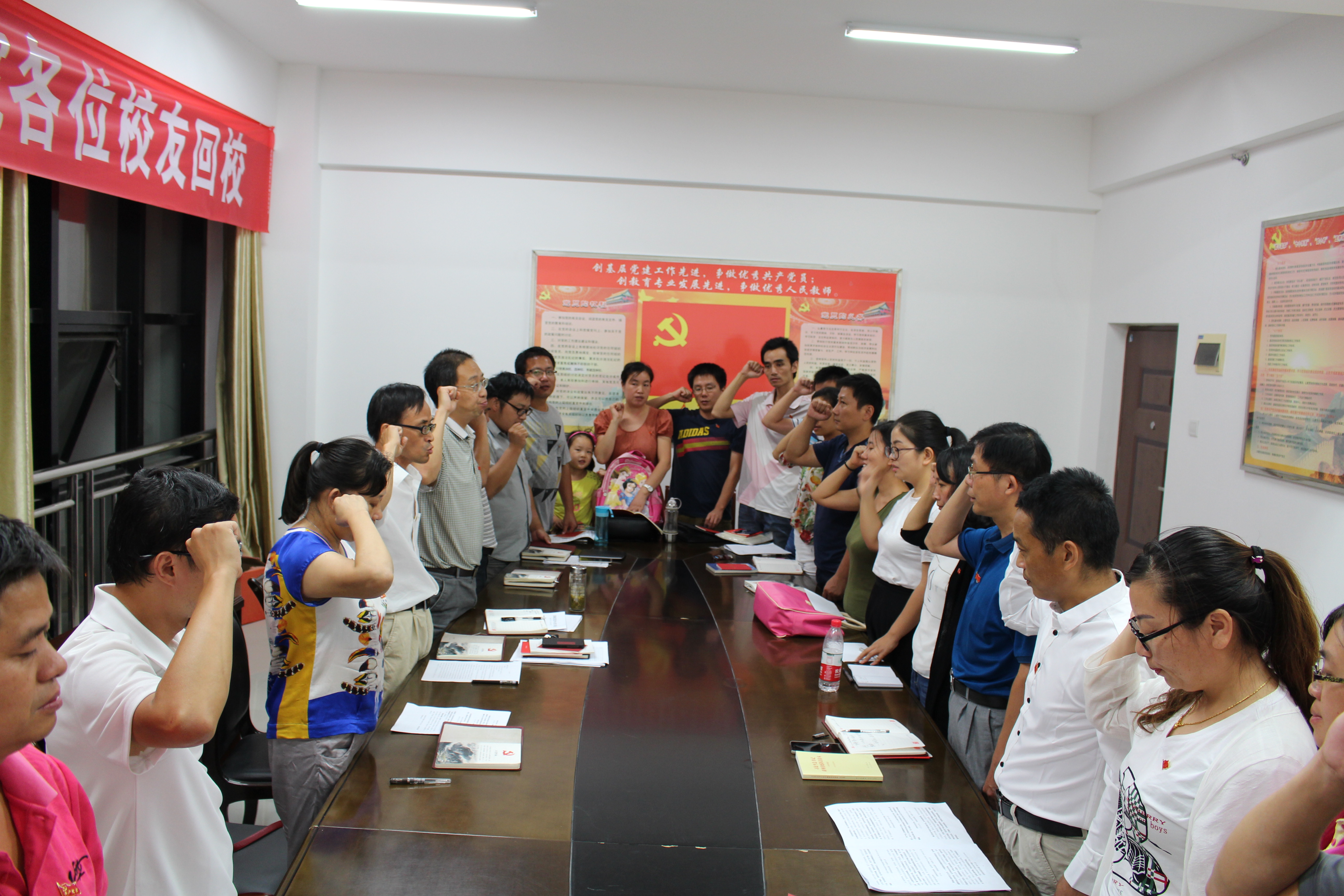 主题活动在庄严的国歌声中开始,在整洁、庄重的活动中心,全体党员佩带国徽,由何中林同志带领起立宣誓,重温入党誓词。重新学习《中国共产党党章》第七章内容。
