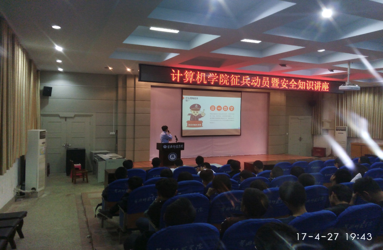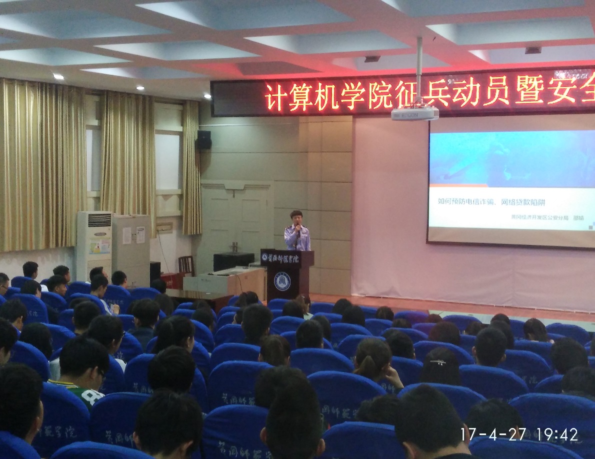 为增强2016级新生安全意识,提高自我保护能力,创建平安校园,4月27日晚,williamhill官网网站在南校区主教B03学术报告厅举办面向2016级新生的大公司园安全知识讲座,讲座由黄冈经济开发区分局的邵婧警官执讲。