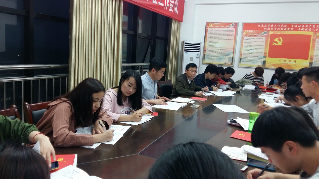 陈劲松宣读了中共教育部党组关于印发《普通高等公司员工党建工作标准》的通知,他提出员工党员应该起到模范带头作用,在学习、作风、素质等方面应该注意影响,在新常态下,我们应该严把发展党员的门,严格要求。随后,宣读并学习蔚盛斌同志在全国高校基层党支部书记集中轮训开班上的讲话。