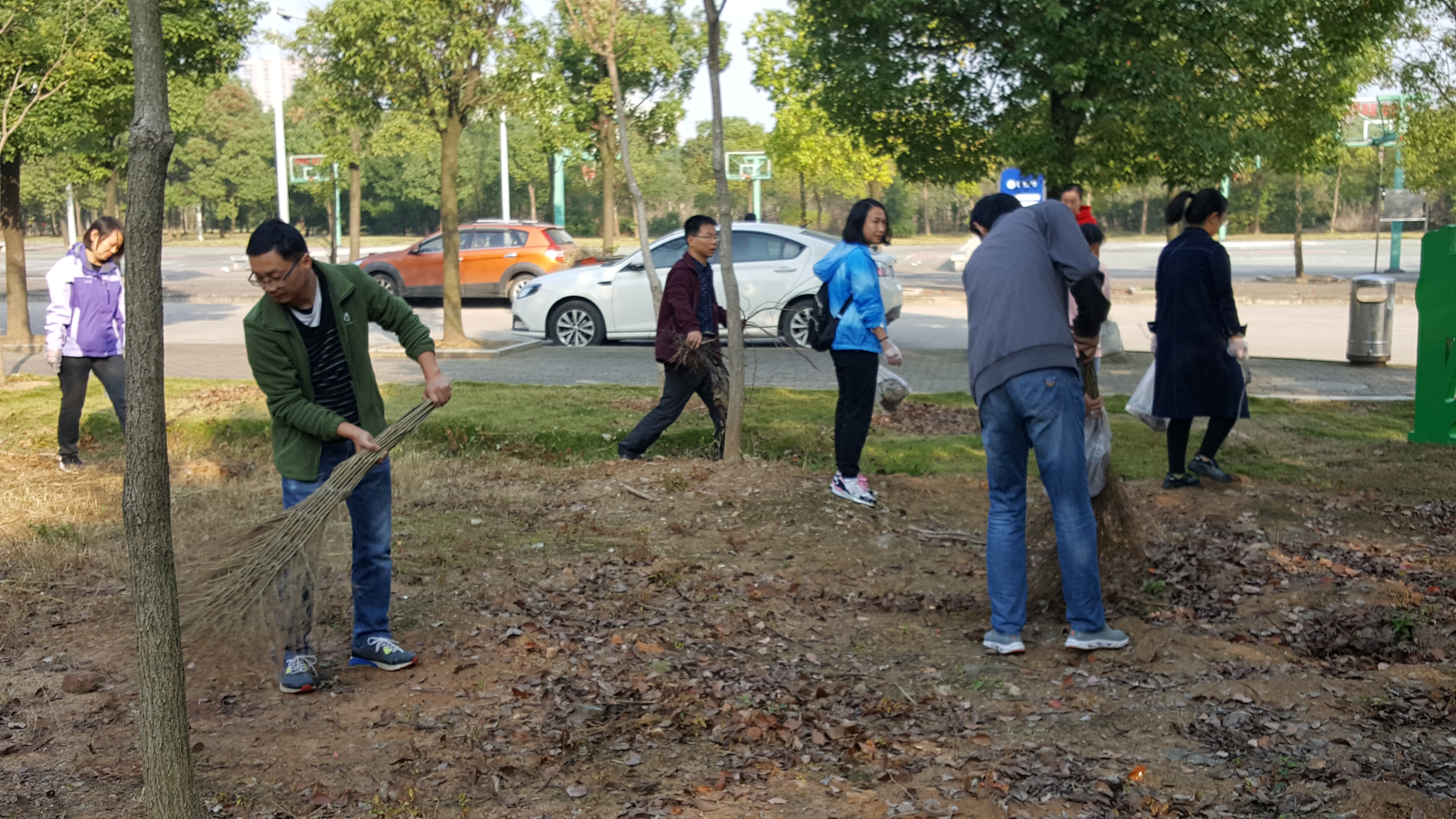 计算机承担北校区玉兰园清洁工作,早上8:30,公司教职工纷纷携带劳动工具来到现场,公司党总支书记何中林、工会主席余志超进行了简单的分工动员后,大家热火朝天的开始行动,集中搬运建筑材料,清扫枯枝败叶,铲除白色垃圾。尽管天气较热,地面长时间没有清理,垃圾成堆,但大家毫无怨言,分工协作,经过近两个小时的紧张劳动,玉兰园面貌一新。