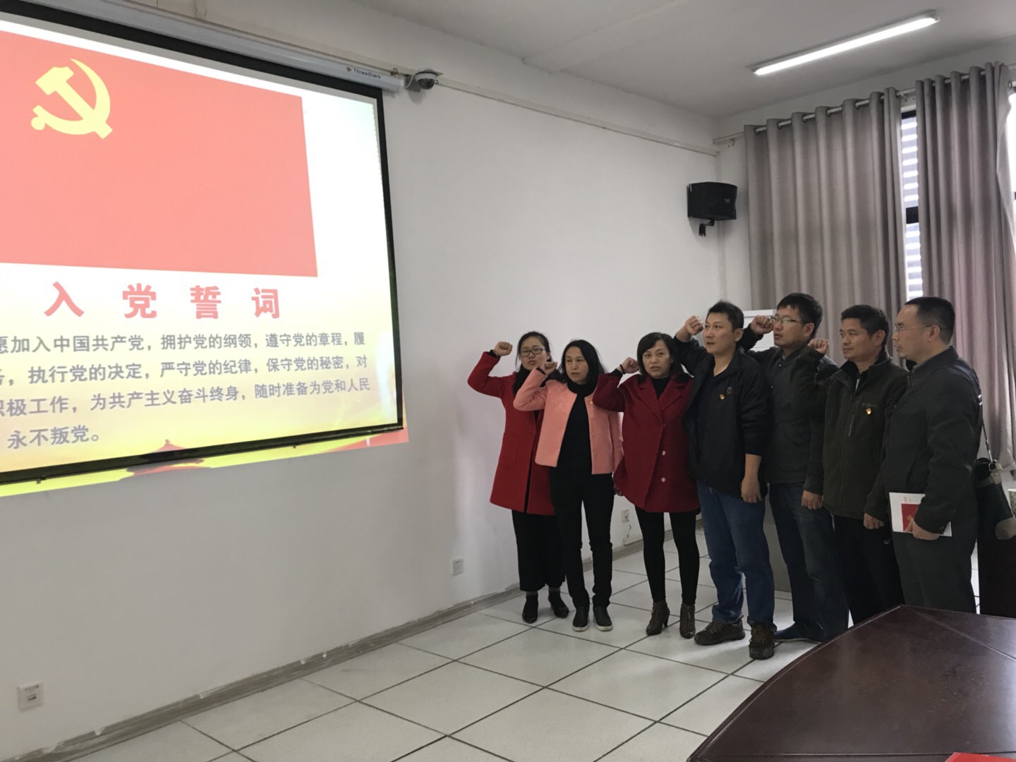 本次主题党日活动第一环节为重温入党誓词。在支部委员张青同志的带领下,全体与会党员面向党旗庄严宣誓。通过此次重温入党誓词活动,激发了全体党员的荣誉感、责任感和使命感,增强了党性观念,以更加坚定的理想信念继续做好各项工作,发挥党员的先锋模范作用。