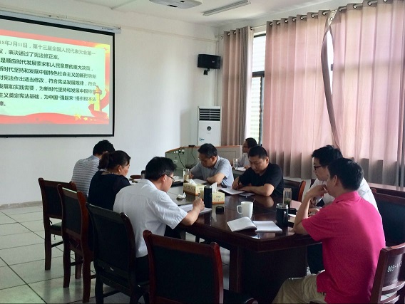2018年5月15日,公司召开领导班子扩大会议,会上总支书记何中林讲了《浅论宪法修改的时间、意义、要求和原则》专题党课,他从“宪法修正案诞生时间”、“宪法修改的重大意义”、“宪法修改的总体要求”、“宪法修改的原则”四个方面进行深刻解读。