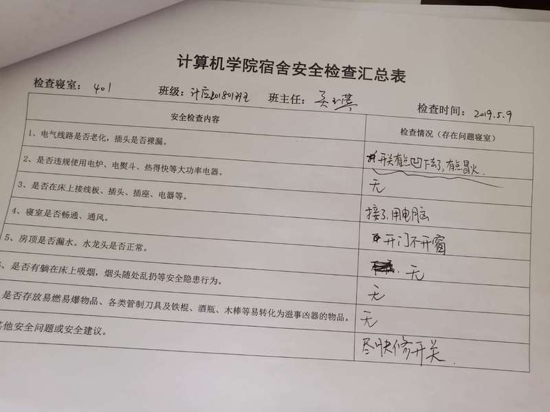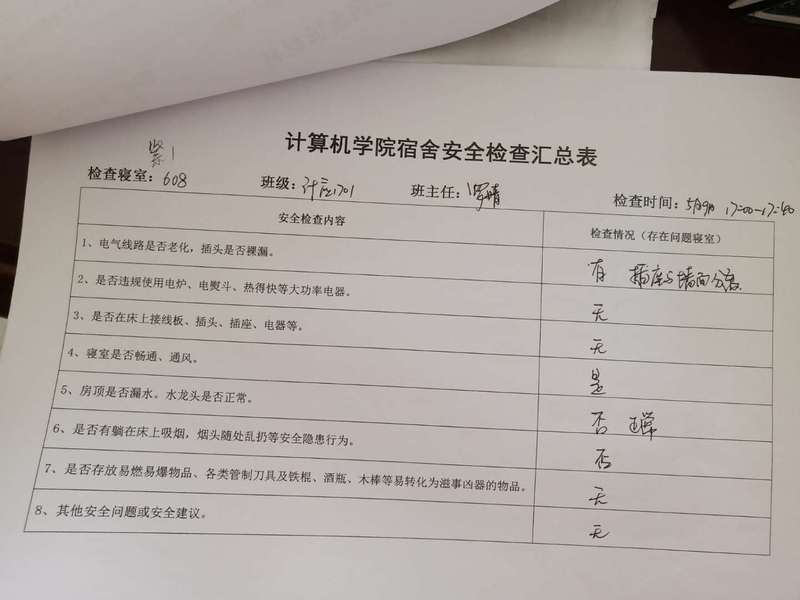 (2)考虑到查卫的实际情况,安全部于每周二通知各班做好准备,搞好寝室安