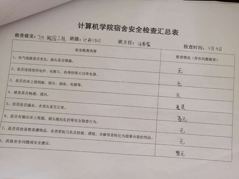 全,每周三中午相关安全委员准时开展安全查寝工作,当天将查卫结果发至安全