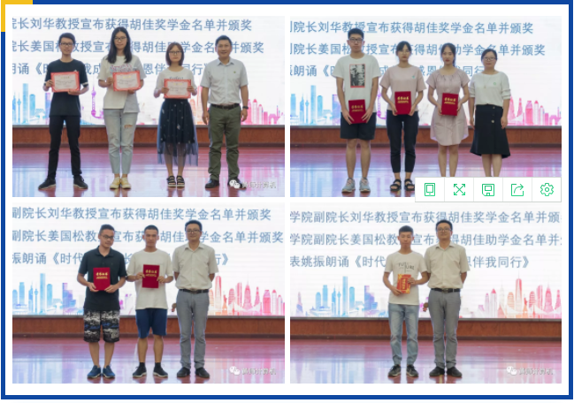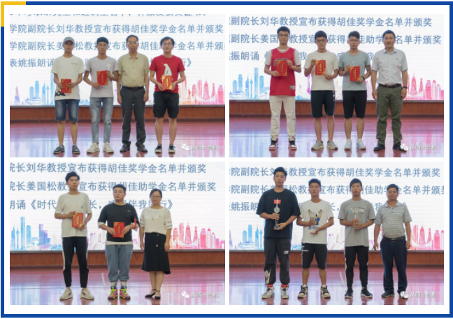 副经理刘华宣布获得胡佳奖学金名单并进行颁奖。