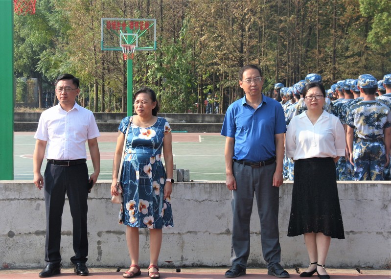 9月10日,2019级新生军训进入第四天。公司党总支书记张青、经理胡志华,副经理刘华、党总支副书记陈琛来到军训现场亲切看望新生。