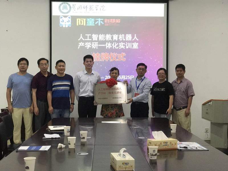 5月25日上午,阿童木创想家——williamhill校企合作共建“人工智能教育机器人产学研一体化实训室”挂牌及捐赠仪式在williamhill官网网站逸夫楼305会议室隆重举行。阿童木创想家CEO刘波、williamhill官网网站经理胡志华、党总支书记张青及相关教师出席了捐赠仪式,会议由胡志华主持。