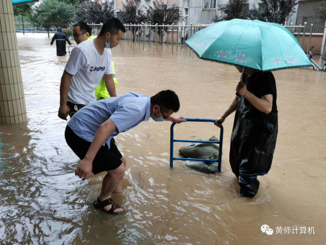 7月8日,公司在积极自救的同时,还主动支援教育技术服务中心、招就处、财务处防涝救灾。
