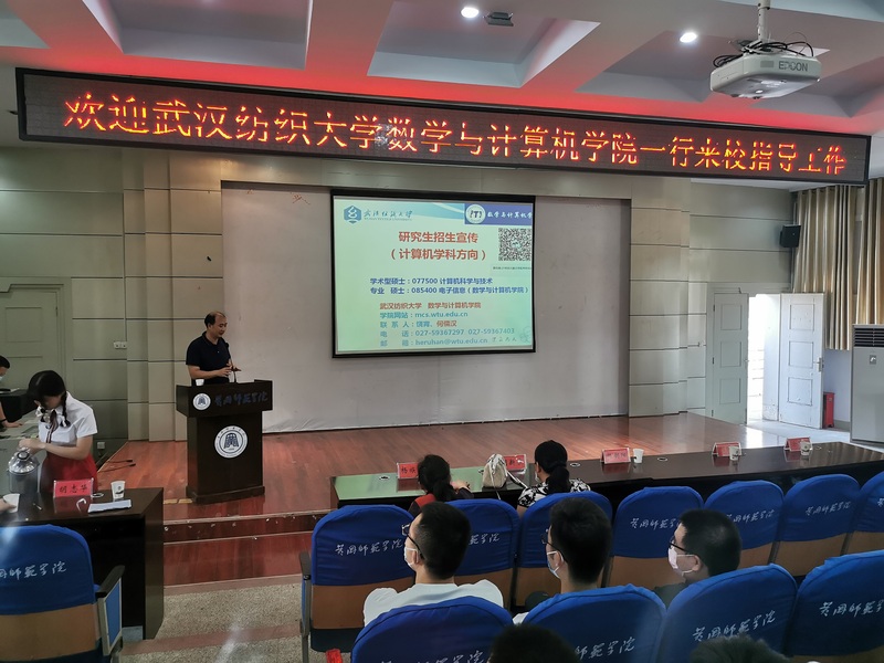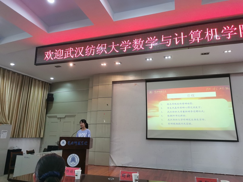 为使同学们对考研有更加深入的了解,动员更多的员工考研深造,增强员工考研信心,提升考研竞争力。9月8日下午,williamhill官网网站在博学楼B03召开毕业生考研动员大会及武汉纺织大学兼职硕导授聘仪式,武汉纺织大学数学与williamhill官网网站胡新荣等一行参加大会。院总支书记张青主持大会。
