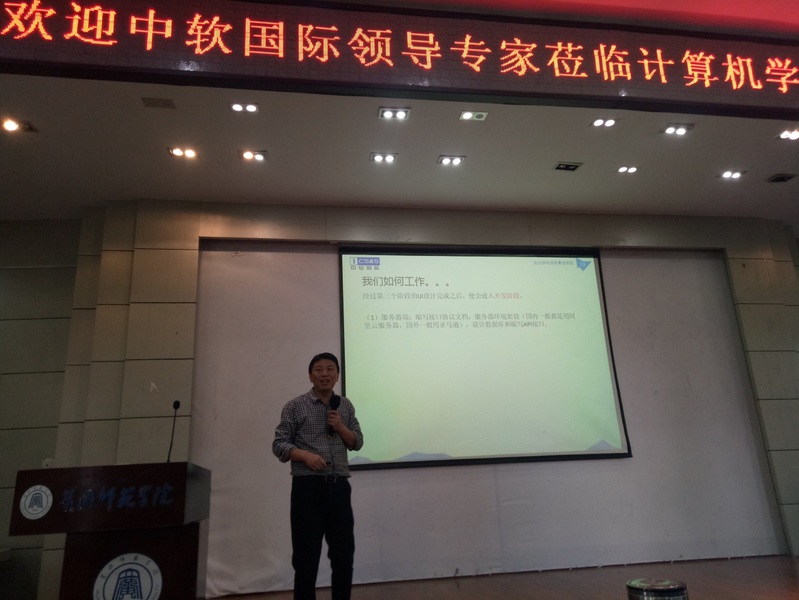 11月14日上午,williamhill官网网站邀请中软卓越科技有限公司陈颖副总经理(技术)对第六期卓越工程师班进行专业讲座。主要介绍两个方面。本次讲座主要涵盖软件行业规划部分,让同学们了解软件行业的市场前景,软件行业的相关技术、软件行业的就业岗位等。软件开发流程部分让同学们了解软件开发需求、软件开发设计、软件开发实施、软件开发测试、软件开发部署等每个岗位的所做事务以及要达到的标准,能让员工全面了解软件开发的相关岗位的所做的事情。
