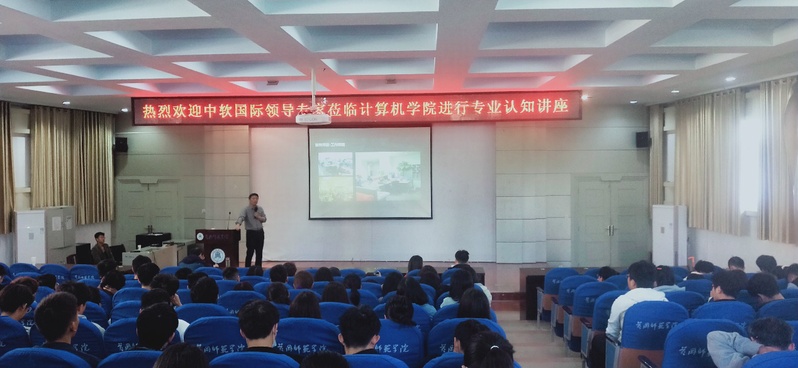 本次专业认知主要分为三部分:行业专家的行业发展现状剖析、专业定位及知识技能的要求知识讲座,实践文化与工作环境氛围体验,综合训练认知等部分。企业人员以主题报告的形式对专业认知同学进行理论培训,使员工们了解计算机行业的相关前沿知识,在实践认知环节,员工们分成小组,在实验室分别进行实践动手操作。