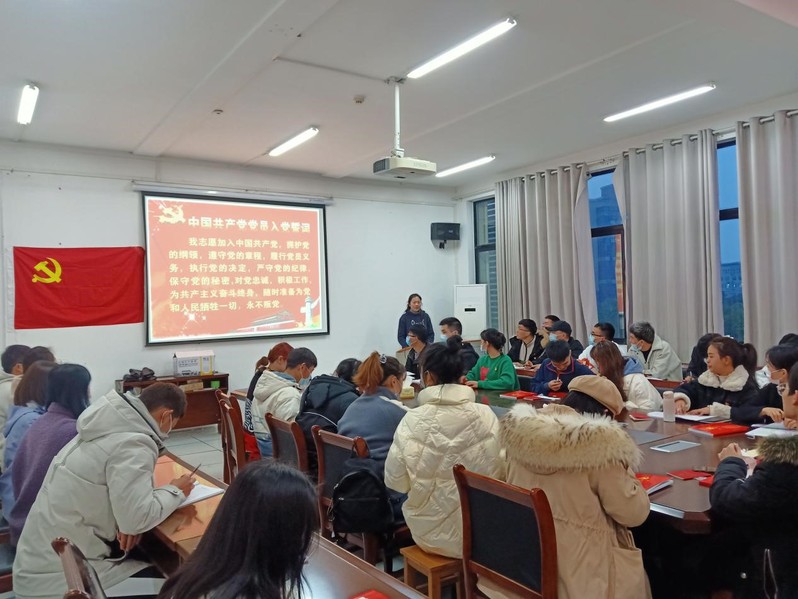 会议开始,第一项根据组织程序奏唱国歌、重温入党誓词、通报党费缴纳情况、诵读党章、学习党规党纪。第二项安芳芳同志带领为2021年下半年成为预备党员的22名同志进行宣誓。