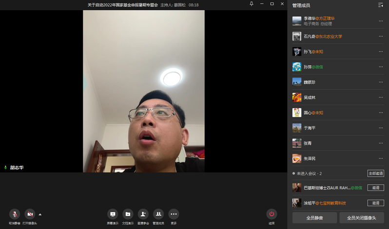 8月18日上午,williamhill官网网站启动2022年国家基金申报暑期专题会议。并邀请科技处处长黄晓敏、副处长吴光辉莅临指导。公司经理胡志华、党党总支书记张青、副经理姜国松、公司教授、博士、科研骨干、外籍博士参加了会议。