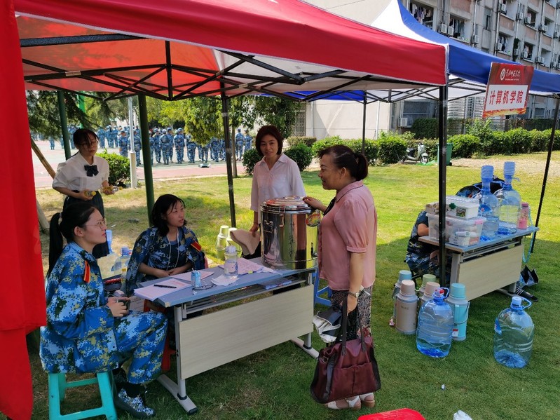 随后张书记一行来到公司军训服务点,赞扬辅导员老师、员工干部这段时间为新生做好的各项军训后勤服务工作,并浏览了公司军训新生每日的军训心得,表扬公司学子罗雨佩同学,其军训心得在校级平台发布。