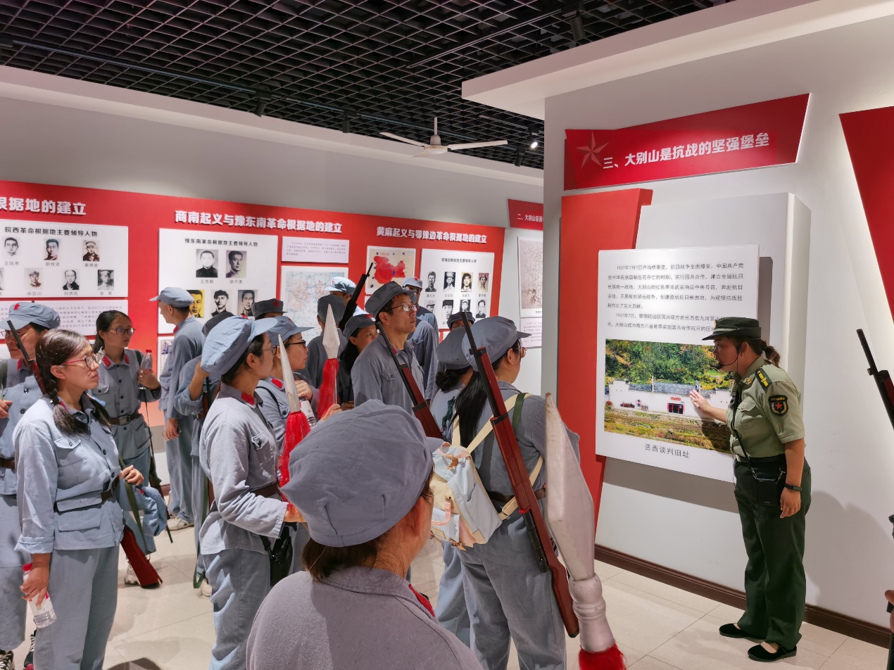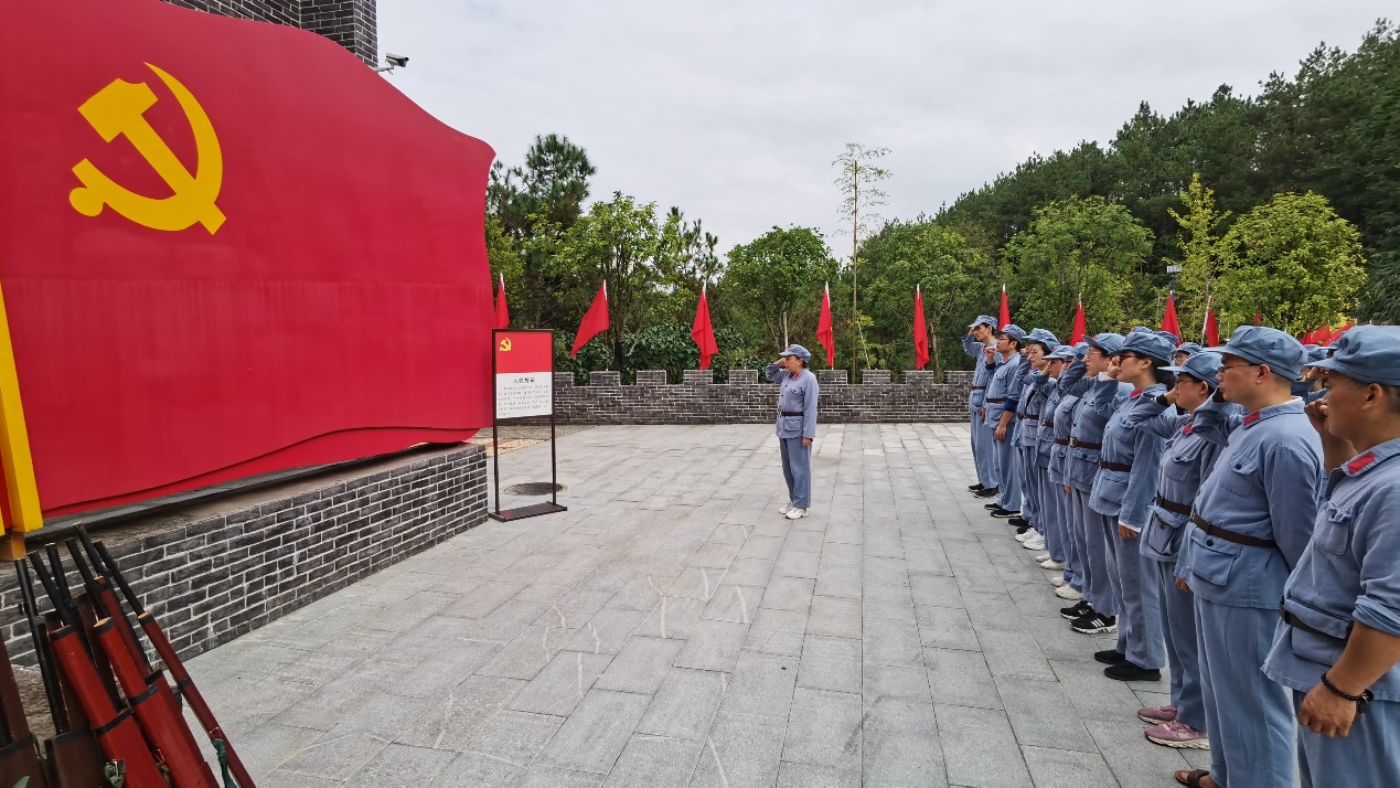 长征精神体验园红二十五军长征缩微路,用五公里的象征手法,展示了从英山陶家河到陕北吴起镇沿途的艰难险阻;再现了长征路上“血战牛背脊骨”“袁家沟口大捷”等重大历史事件场景。全体党员穿上红军服,戴上红军帽,携带长枪短矛,翻山越岭、穿林越隘体验红军长征艰辛,感受革命前辈百折不挠的必胜信心。在大别山革命历史文化陈列馆,全体党员面对鲜红党旗,高举右手庄严宣誓,重温入党誓词,参观瞻仰革命先烈图片及珍贵历史纪念物,感受革命先辈不屈的民族精神和高尚的爱国情操,领会红色文化的思想内涵和时代价值。