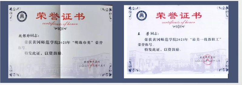魏银珍获校“明珠巾英”称号,王芳获校 “最美一线教职工”称号