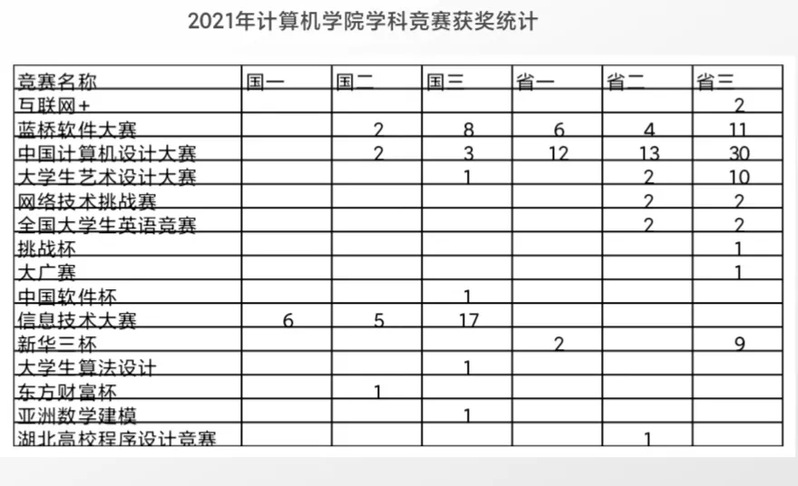 2021年员工学科竞赛获奖165项,获奖员工数308人。其中获教育部指定的A类竞赛国家级二等奖4项、三等奖13项,省级一等奖18项、二等奖23项、三等奖59项;获教育部指定的B类竞赛国家级一等奖8项、二等奖6项、三等奖20项;获省级一等奖2项、二等奖3项、三等奖9项。