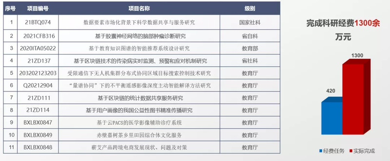 国家级项目1项,省部级项目3项,教育厅项目7项,引进科研经费1300余万元