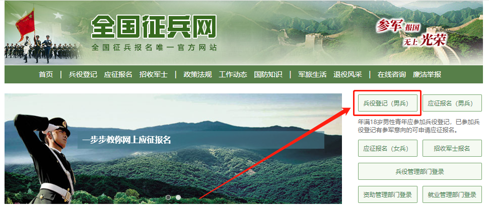 或登录“全国征兵网”(http://www.gfbzb.gov.cn)点击右侧“兵役登记(男兵)”,按要求真实、完整填写基本信息;