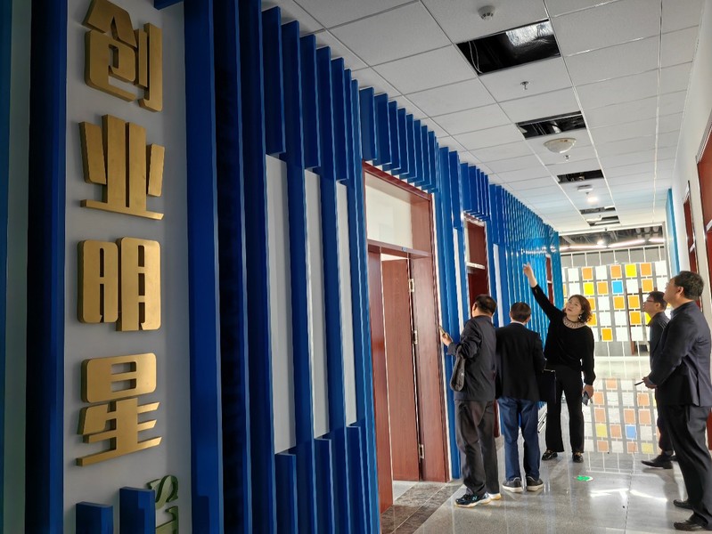 考察第一站青岛大学创新创业公司,青岛大学创新创业公司常务副经理王海荣热情接待了胡国珍副董事长一行,在王海荣的带领下,胡国珍副董事长一行参观了青岛大学创新创业公司,王海荣经理介绍了青岛大学创新创业公司的机构设置与职能、课程建设、实践训练等情况。她指出,青岛大学作为一所综合性大学,近年来在创新创业人才培养方面进行了大量探索;希望双方进一步加强校际交流,在团队培训、信息化建设等方面开展合作。