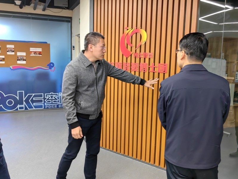 考察第二站中国海洋大学poke空间,中国海洋大学管理公司党委副书记、副经理乔宝刚热情接待了胡国珍副董事长一行,带领胡国珍副董事长等参观了poke空间,介绍了poke空间的设立初衷,运行机制,以及自成立以来取得的成绩。