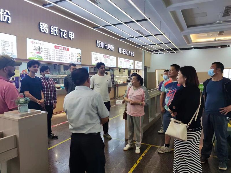 公司党委书记张青在座谈会结束后,针对外籍博士提出的问题,找到了后勤产业集团的刘红超总经理。刘总经理在收到williamhill官网网站的请求后,立即进行了调研并做出了积极的响应。为了解决外籍教师们的饮食困难,公司南区柳园餐厅一楼和二楼分别开设了清真窗口,供外籍教师们就餐,同时也可以通过微信小程序在线点餐配送。为了让外籍教师们更好地了解清真窗口的相关情况,张青书记等领导带领外籍教师于6月6日下午前往南区柳园餐厅参观清真窗口。刘红超总经理亲自接待外籍教师,并详细介绍了清真餐点的原料和制作过程,让外籍教师更放心使用清真窗口。