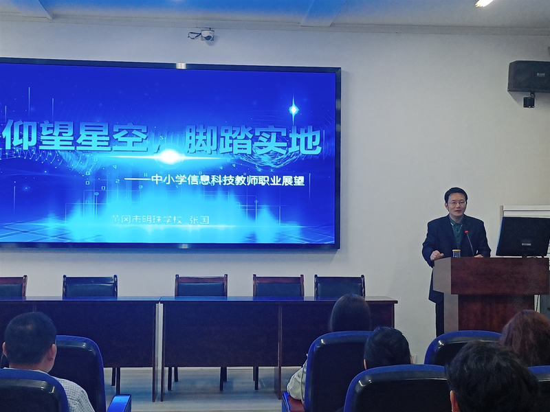 图2 黄州区一中胡程鹏老师为同学们讲解信息技术老师的日常工作