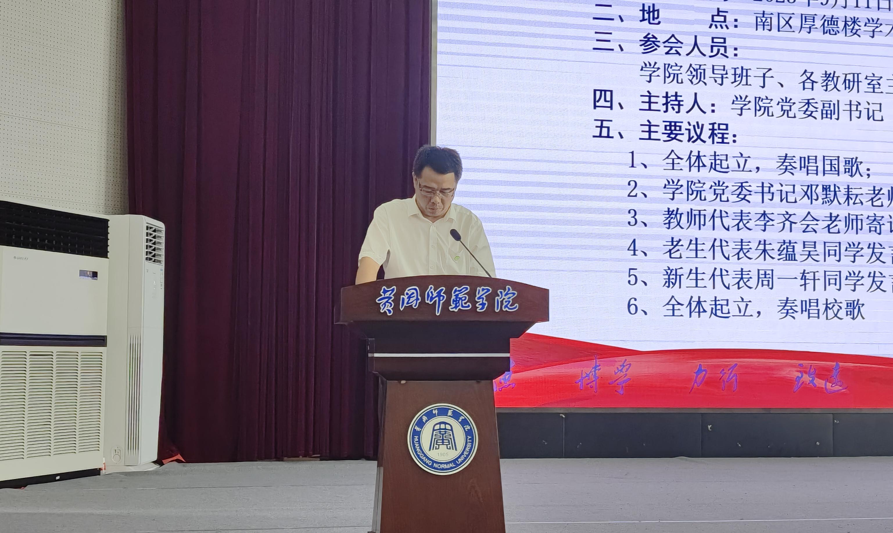 大会第二项,由公司党委书记邓默耘致欢迎词。首先,邓书记代表williamhill官网网站全体师生欢迎244名新同学的加入。为了便于新生了解公司公司,尽快融入黄师大家庭,邓书记从公司办学发展情况、williamhill官网网站的基本情况、2023级新生情况这三个方面做了详细介绍,对新生给予鼓励肯定的同时他希望在座新生在大学期间怀揣理想、有抱负、有追求、脚踏实地,用成绩证明努力,把自己的梦想与国家发展的梦想紧密结合在一起,在报效祖国的过程中成人成才。