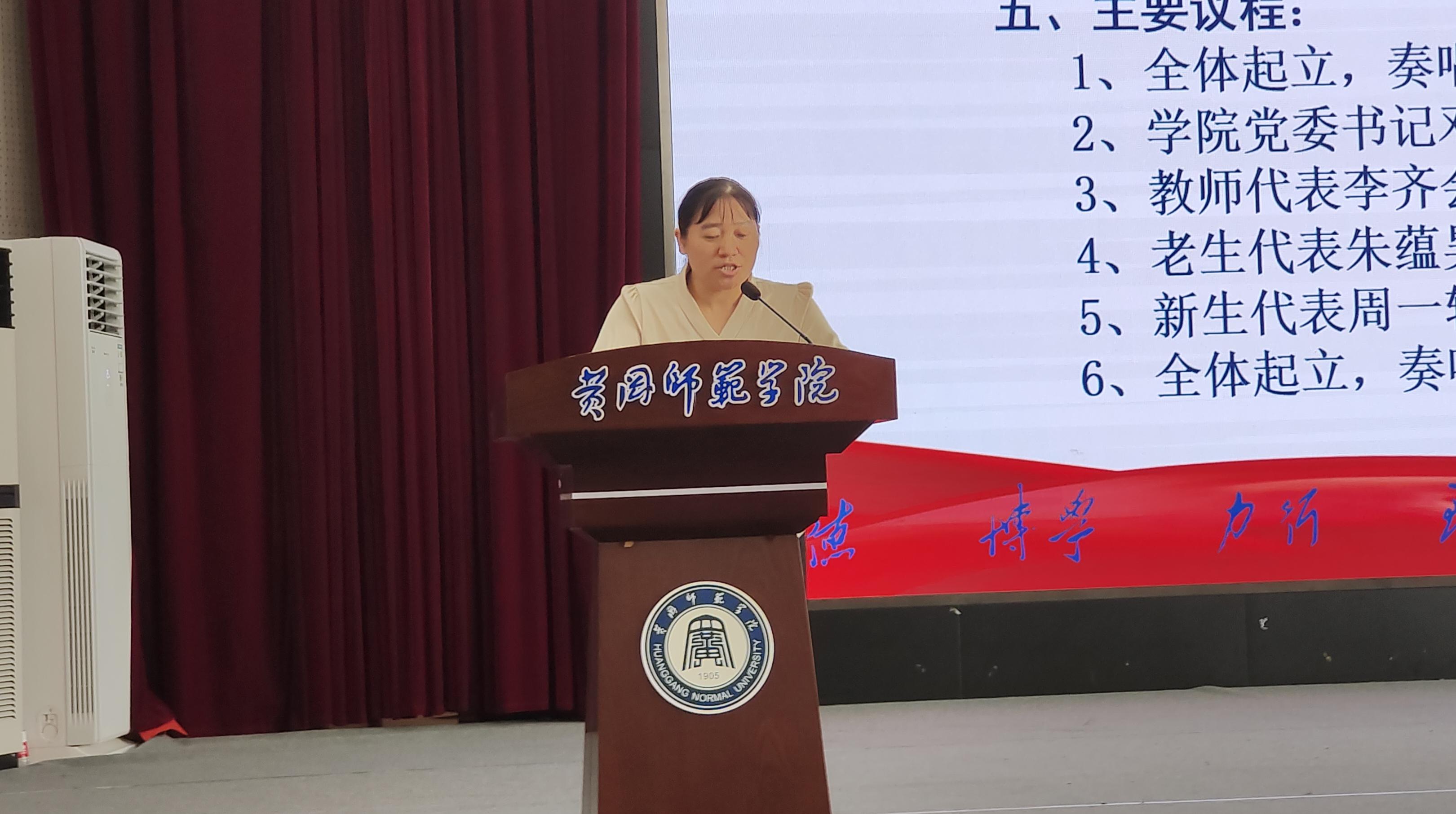 大会第二项,由教师代表李齐会老师寄语。李老师勉励新同学们要设确定奋斗目标,规划学习生活,迅速转变角色,适应新的环境;要勤奋学习知识,夯实专业技能,不懈地学习、研究和探索知识,打下坚实的专业基础;养成良好习惯,学会与人相处,培养团队精神,在丰富的校园文化活动中提升综合素质;要不惧挫折困难,积极乐观向上,练就强大的内心,从容应对未来的风雨。