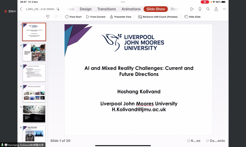 9.Hoshang Kolivand教授,英国利物浦约翰摩尔大学:他的报告“AI and Mixed Reality Challenges: Current and Future Directions”讨论了人工智能与混合现实的挑战,以及未来发展方向。