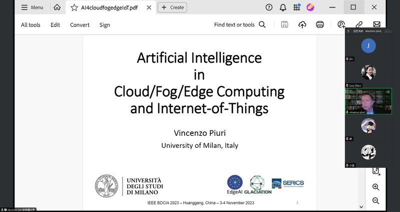 7.Vincenzo Piuri教授,意大利米兰大学:他的报告“Artificial Intelligence Cloud/Fog/Edge Computing and Internet-of-Things”探讨了人工智能在云、雾和边缘计算中的应用,以及物联网技术的未来发展。
