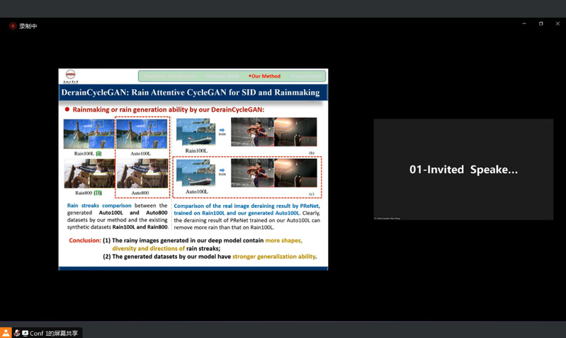 6.张召教授,合肥工业大学:他的报告“DerainCycleGAN: Rain Attentive CycleGAN for SID and Rainmaking”介绍了一项有关智能降雨技术的研究,有望对气象和农业产生积极影响。