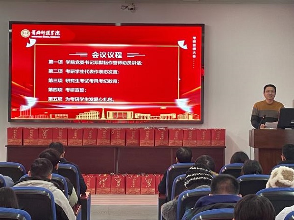 大会第三项由辅导员胡志锋老师对考研学子进行考风考纪教育,强调要提前了解考务安排,充分做好考试准备,严格遵守考试纪律,沉着应试、冷静答题,发挥最佳水平。