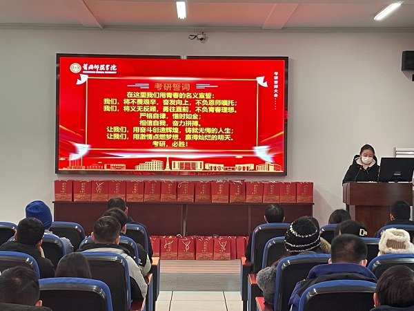 大会第四项彭欣雨同学带领考研学子激情昂扬地进行考研宣誓。考研学子的铮铮誓言是对考研必胜的青春告白,更是对自己的鼓劲加油。考研,必胜!