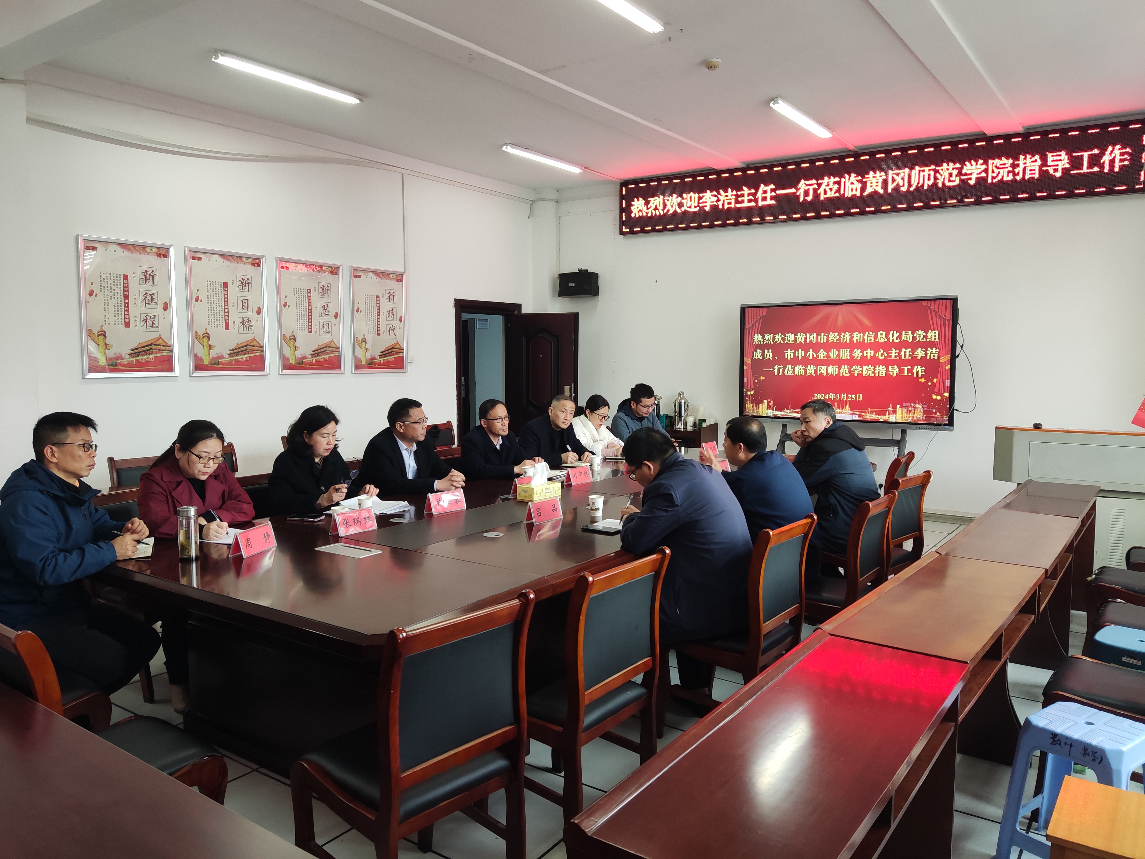 3月25日,黄冈市经济和信息化局党组成员、市中小企业服务中心主任李洁一行莅临williamhill官网网站,就公司专精特新产业公司建设工作进行指导,公司领导班子、教师代表参加本次会议。