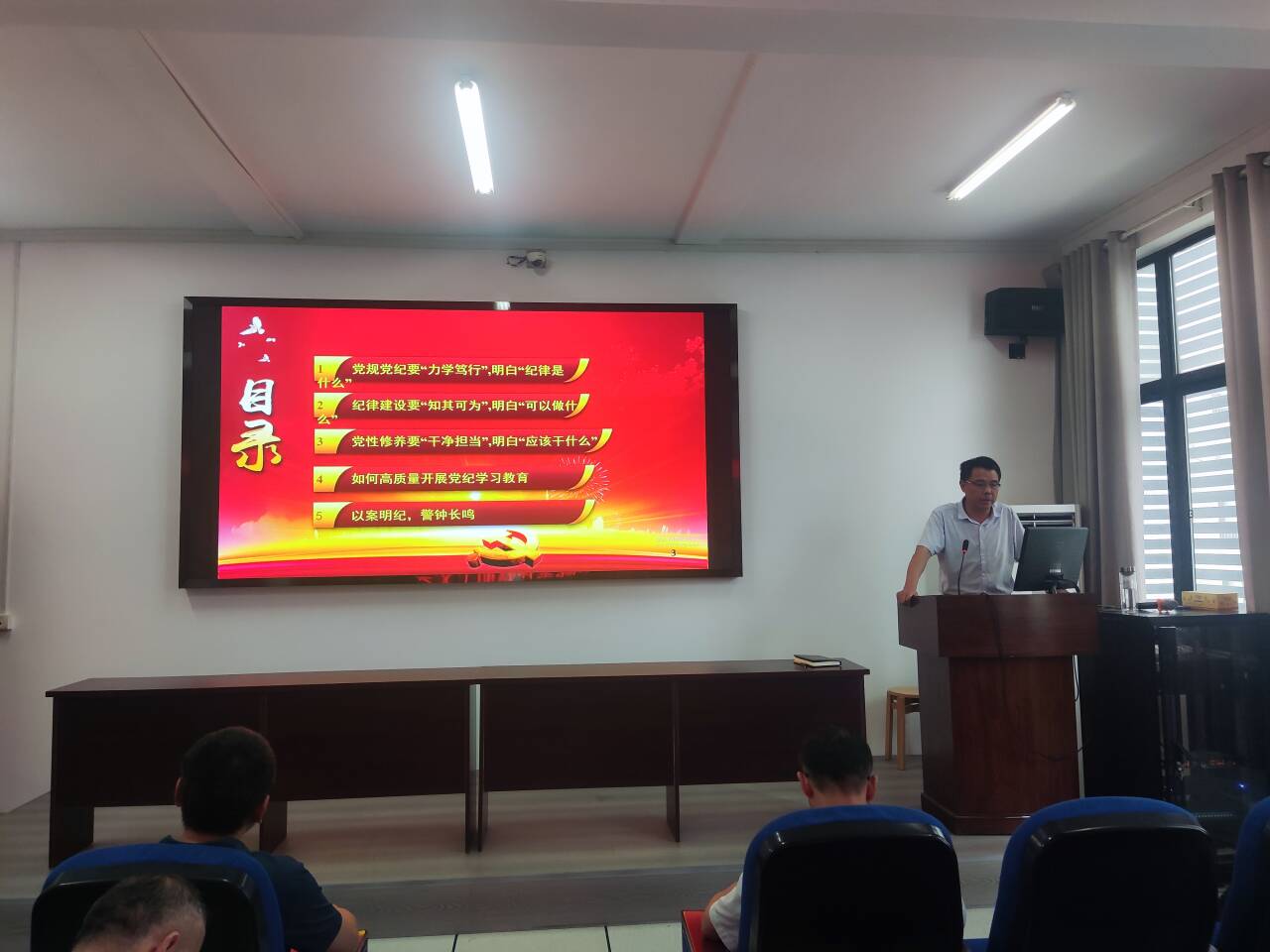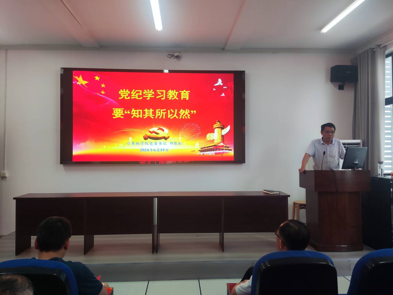 6月19日下午4点,为推动党纪学习教育走深走实,全面加强党的纪律建设,增强党员的纪律意识和规矩意识,公司党委书记邓默耘于逸夫楼308会议室以《党纪学习教育要“知其所以然”》为题讲授党纪学习教育专题党课,公司党政班子成员、全体党员教职工参加学习。