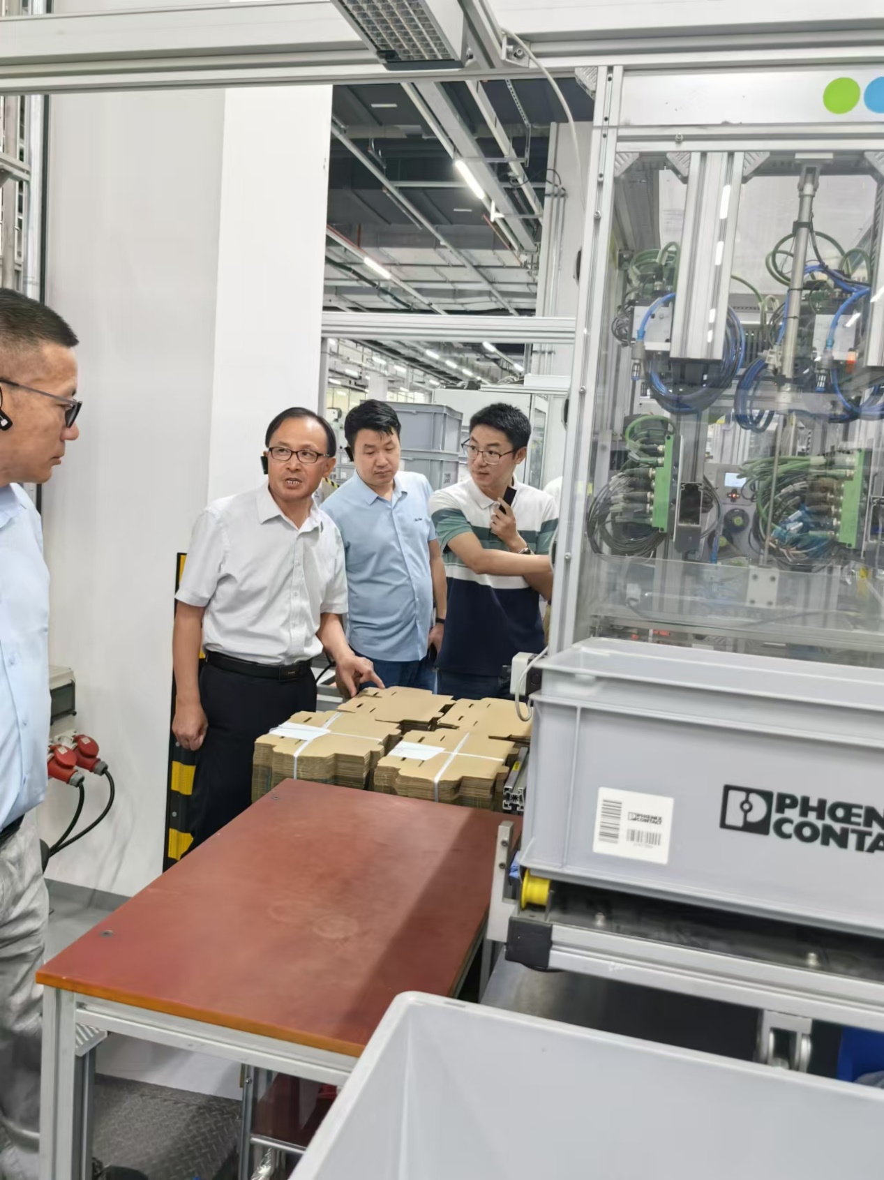 考察团还参观了菲尼克斯电气中国公司总部基地。自动化技术工程师卞嘉楠详细讲解了公司的物料物流仓储及供应系统,让考察团对现代化企业在数字孪生及人工智能应用方面有了更直观的了解。菲尼克斯电气中国公司在这些领域的先进实践和技术应用,给考察团留下了深刻的印象。