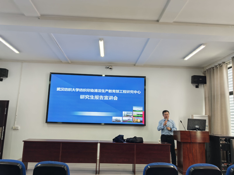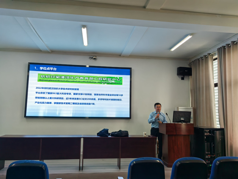 在宣传会上,夏东升教授详细介绍了武汉纺织大学纺织印染清洁生产教育部工程研究中心新技术研究院的研究课题方向,以及相关领域的就业机会和未来发展潜力。此外,夏教授还对武汉纺织大学的研究生奖学金制度及其金额进行了深入讲解,为员工们提供了丰富的信息。