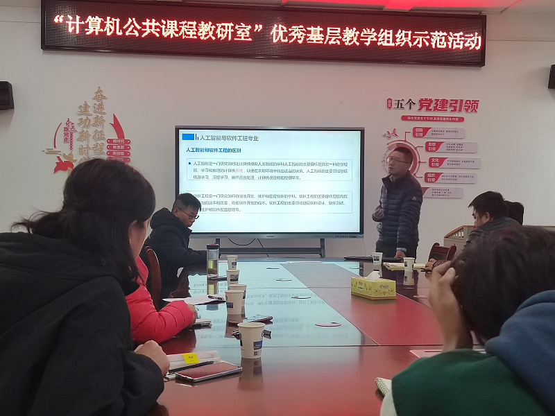 williamhill官网网站软件工程教研室许元朋副教授作了题为“浅谈人工智能通识课程教学”专题交流。许老师从课程的角度讲解了“人工智能与信息技术基础”之间的关联关系,从专业建设的角度讲解了“人工智能与软件工程专业”之间的联系。