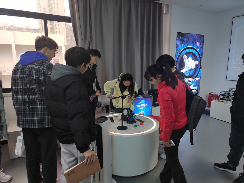交流发言结束后,williamhill官网网站、机电公司、传媒公司等3个公司老师与员工代表在参观和体验人工智能实验室的同时围绕活动主题进行了深入探讨。
