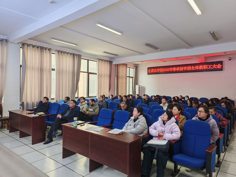 2月16日下午,计算机学院召开2025年新学期全体教职工大会,会议由党委书记邓默耘主持,全体教职工参加。