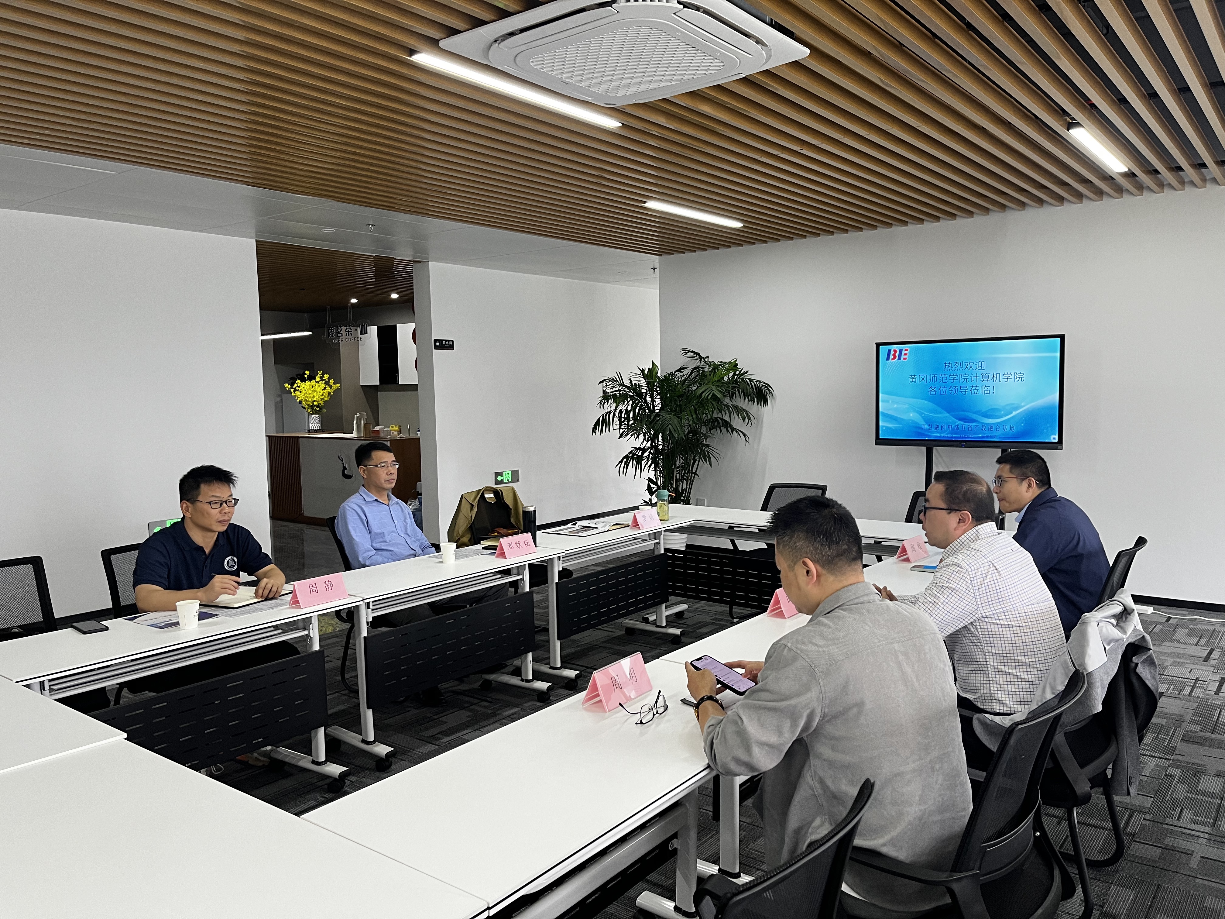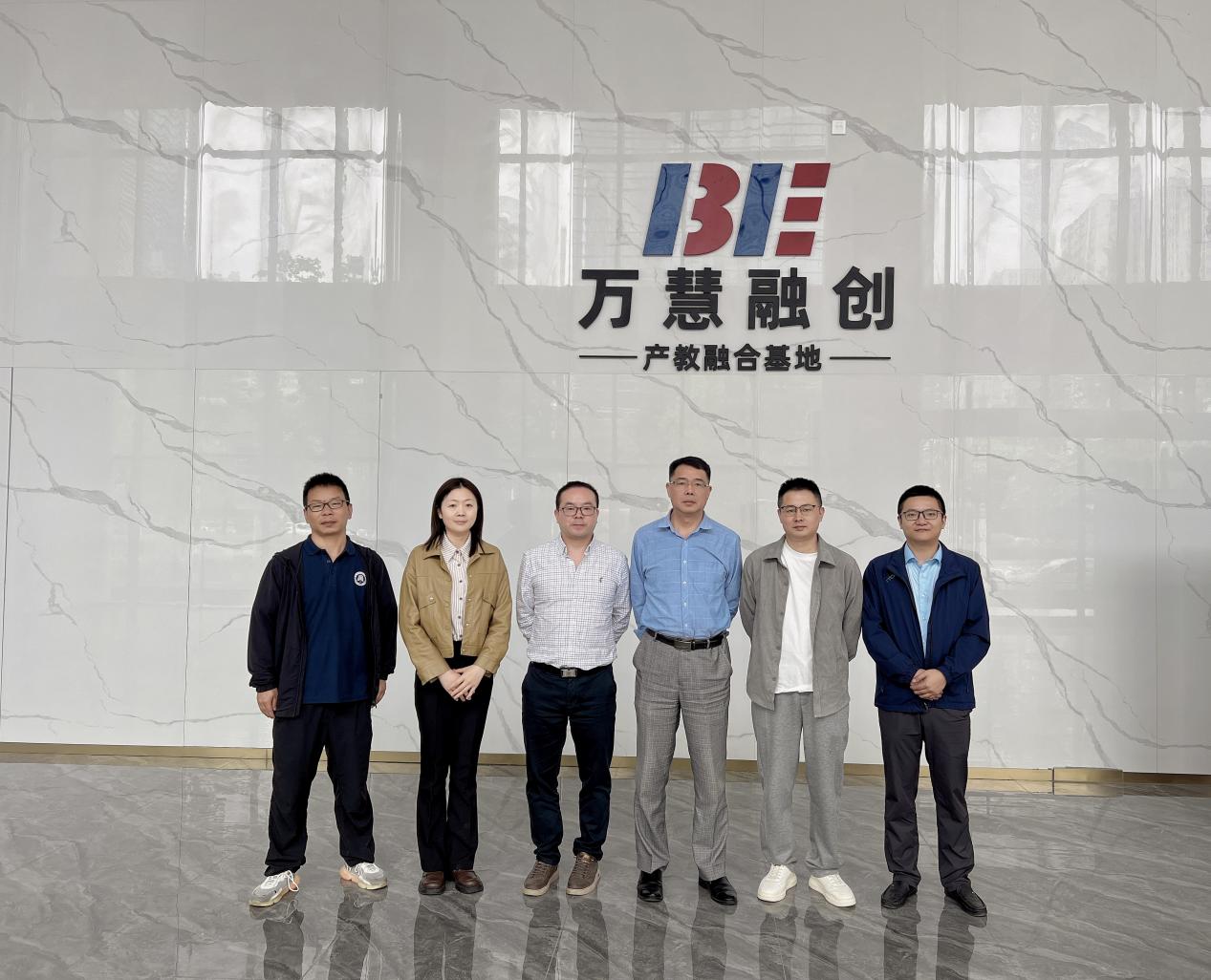万慧融创(中部五省)产教融合基地主任叶斌、技术总监周欣和院校总监周明等对邓默耘一行的到来表示热烈欢迎。叶斌主任带领公司一行参观了基地的实训与实践中心、创新与创业中心以及办公区域等场所,并介绍了企业的核心优势与人才需求。