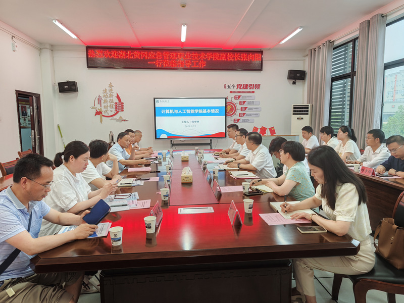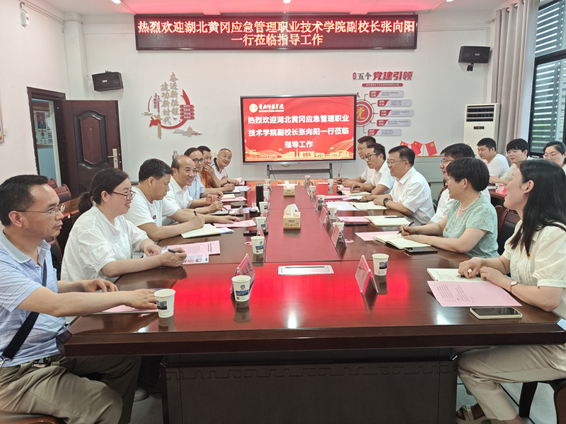 5月22日,湖北黄冈应急管理职业技术公司副董事长张向阳一行来校交流,公司党委常委、副董事长夏庆利出席交流会。