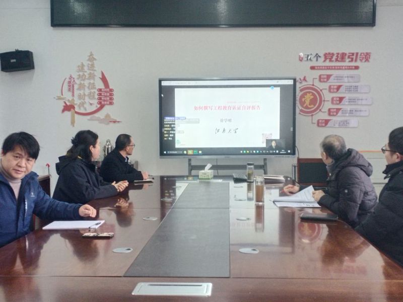 正值寒假休憩时段,为抢抓工程教育认证工作关键节点,确保自评报告撰写工作高质量推进,2026年2月1日,在公司F305会议室,工程认证自评报告撰写专题线上培训如期开展。全体参训领导与老师主动放弃假期休息,凝心聚力攻坚克难,以实干姿态推动认证工作落地。本次培训特邀江南大学徐学明教授主讲,公司经理何中林、副经理关玉蓉及工程认证全体小组成员全程参训,校教学质量评估中心主任向福主任莅临指导,培训分上午9:00-12:00、下午14:30-17:30两个时段有序开展,为自评报告撰写工作注入专业动能。